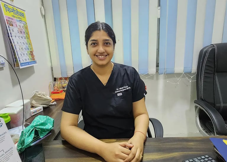 I had visited Dr Mitali Pitale's clinic when my brother had dental treatment. Dr. Mitali is very soft spoken person. She explains complete procedure. It helps in building the confidence in the mind of patient for the Dr. It is not so costly. The clinic is neat and clean. The staff is cooperative.