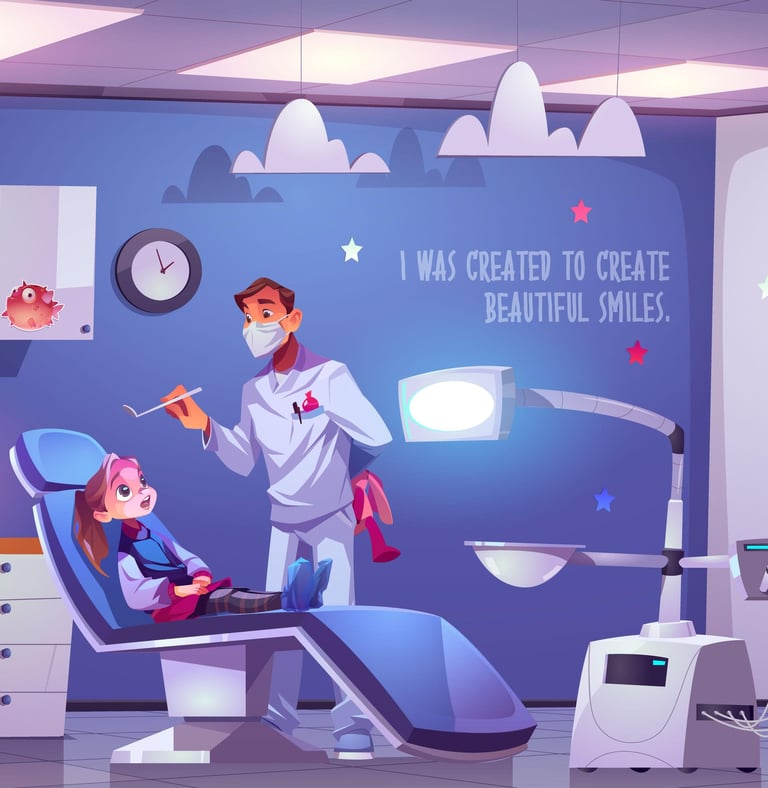 Painless treatment of cavities in milk teeth using child-friendly techniques.
